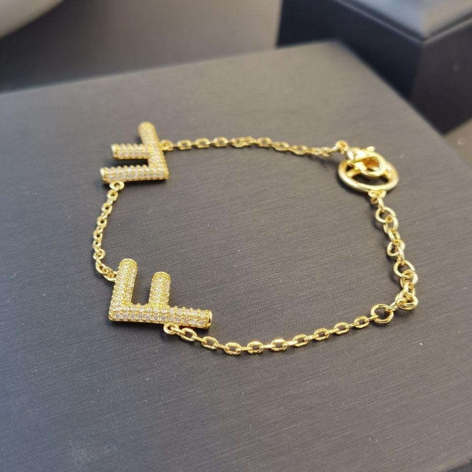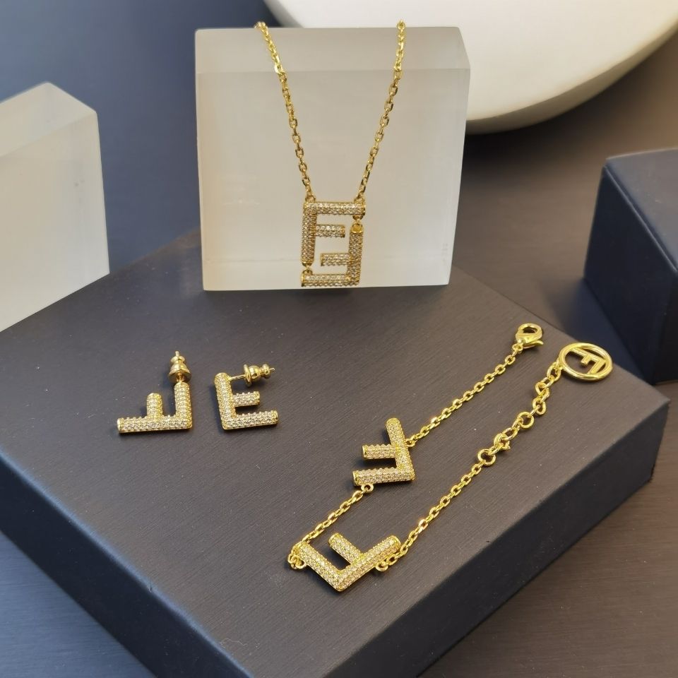 Full Diamond Letter F Asymmetric Earnail Bracelet Necklace