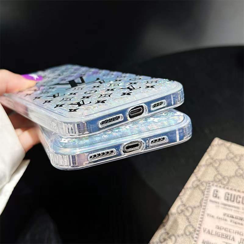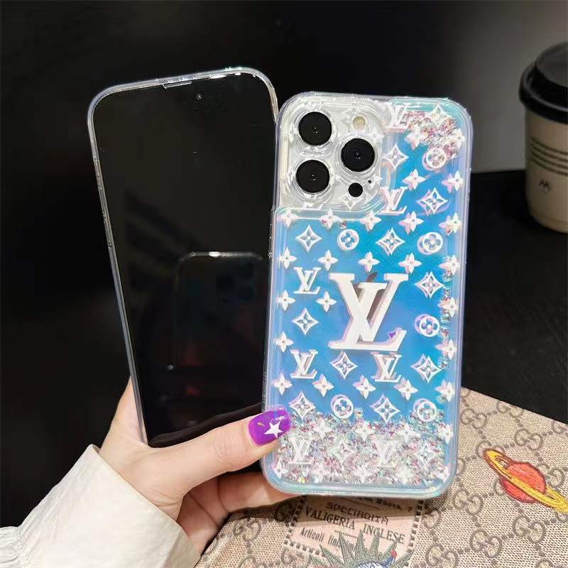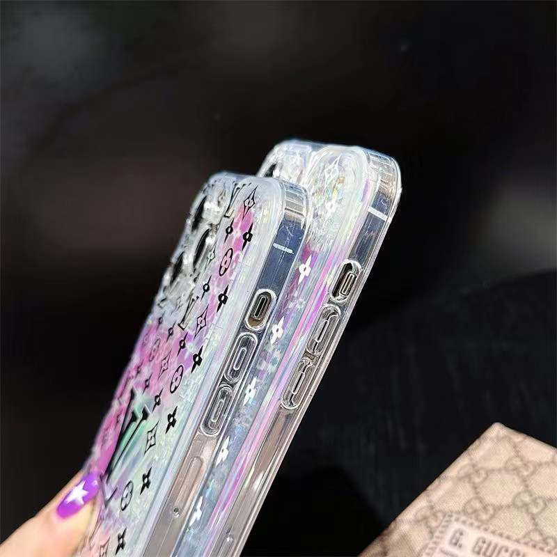 Old flower laser quicksand phone case for iPhone