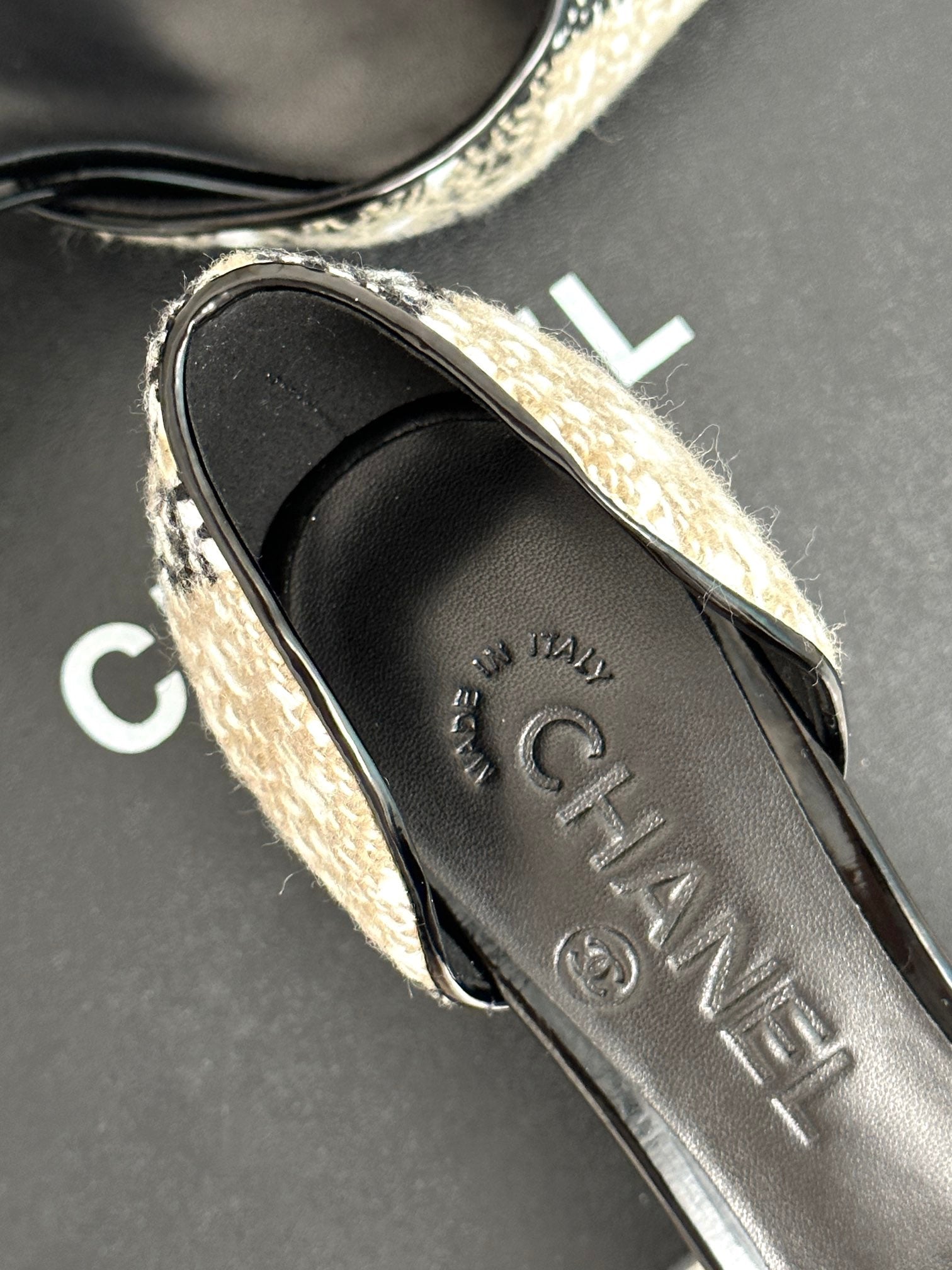 Upper in custom patent calfskin/sheepskin