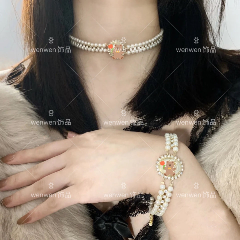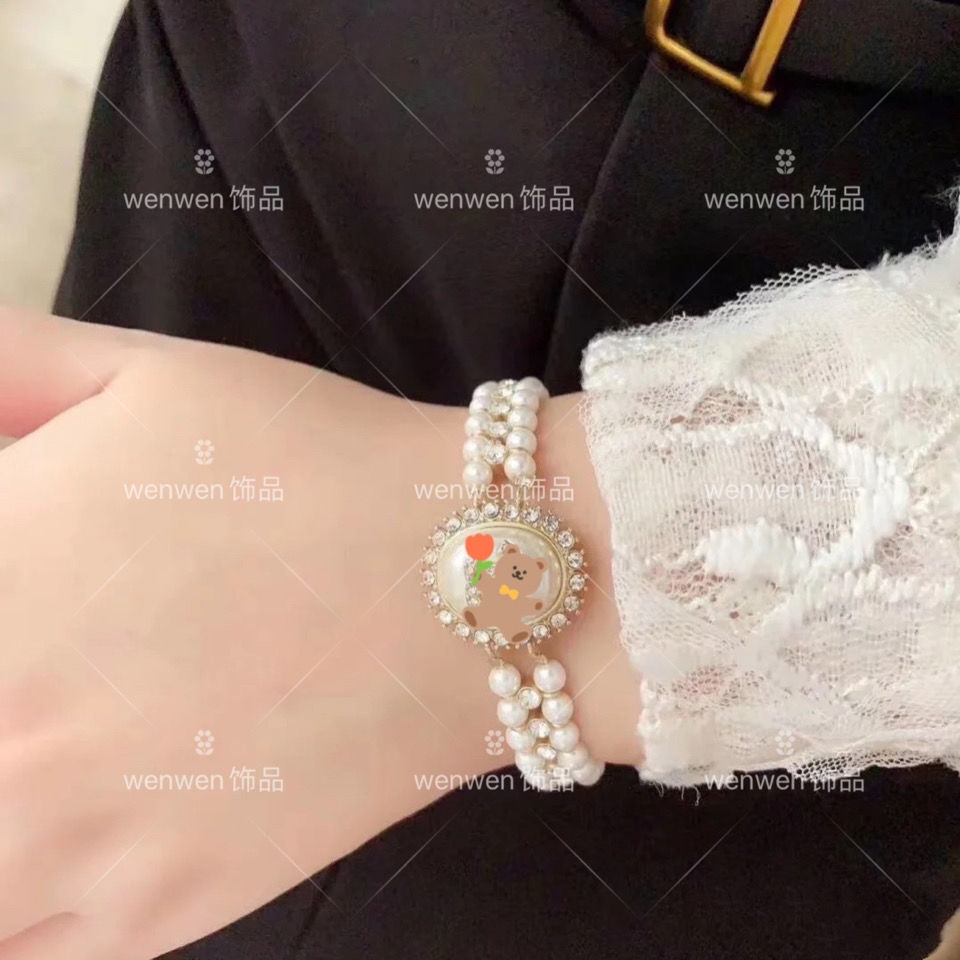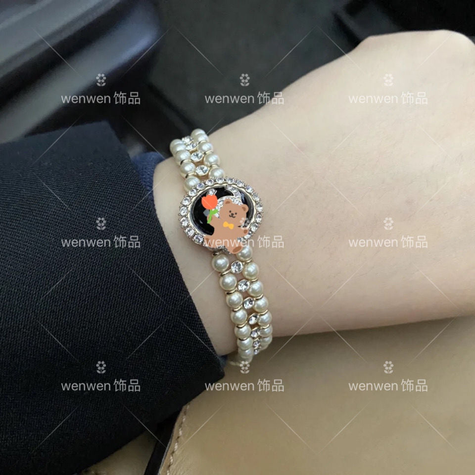 Diamond-encrusted double-layer pearl bracelet