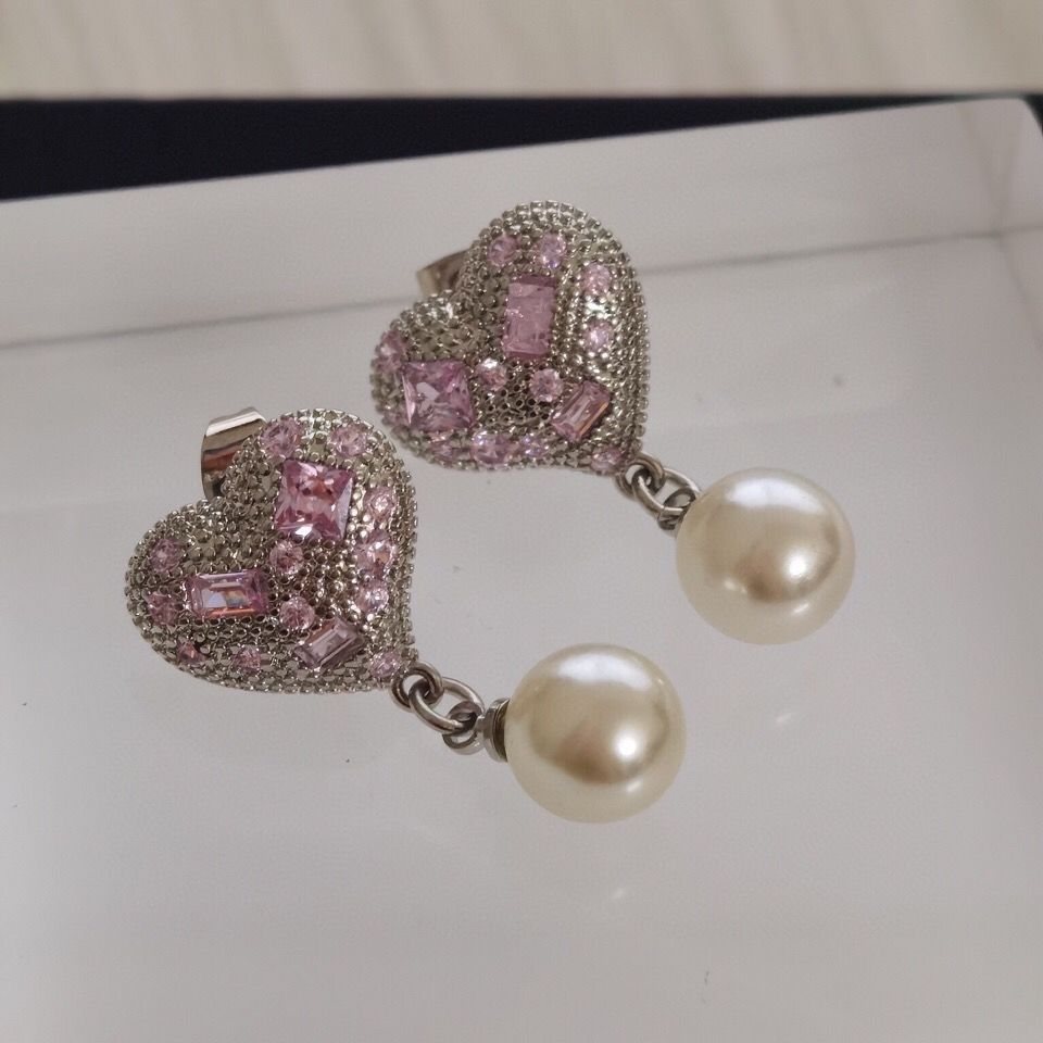 New Color Diamond Love Pearl Earrings Female Earrings