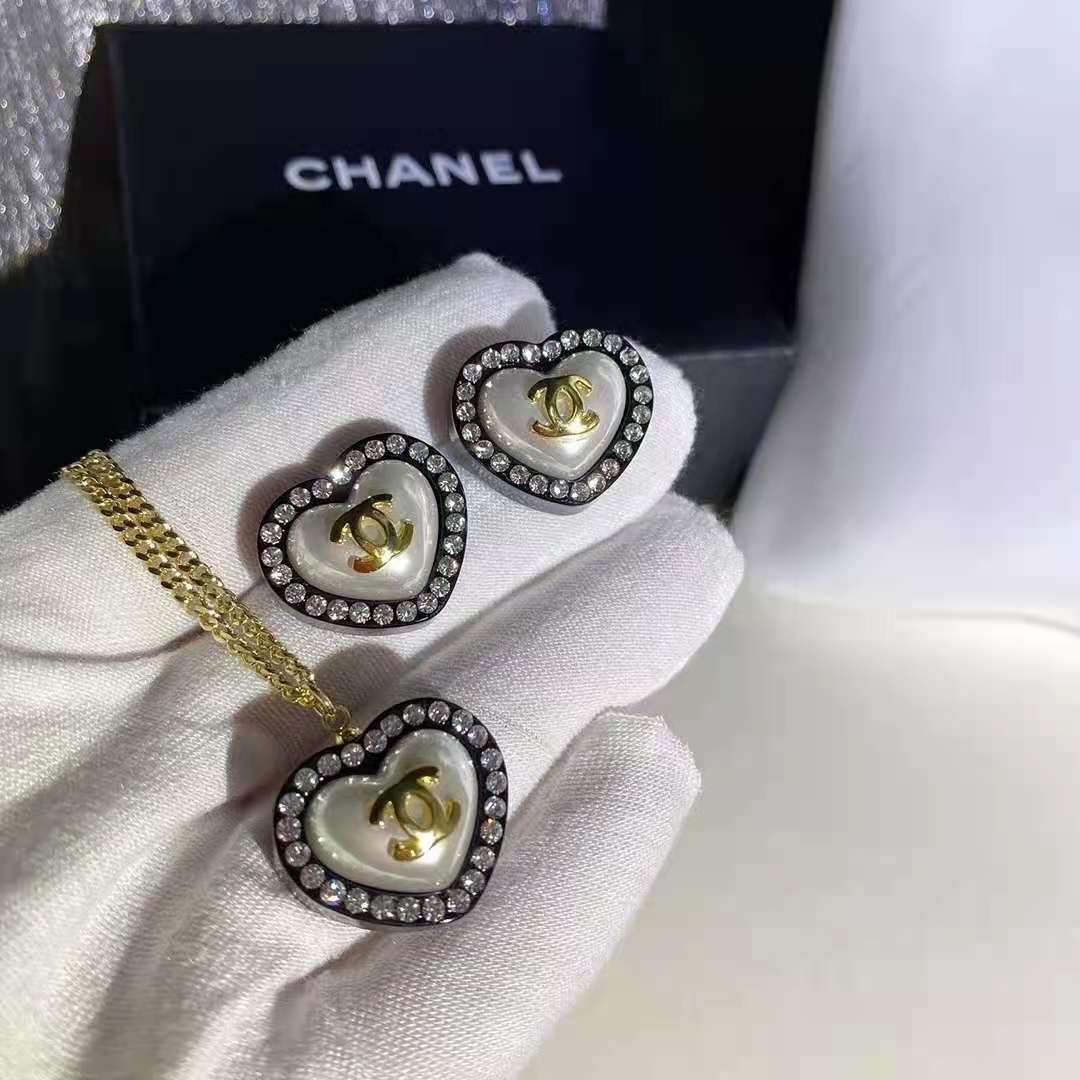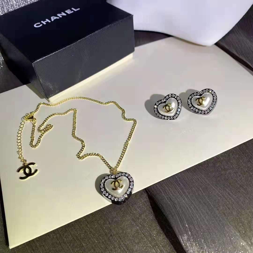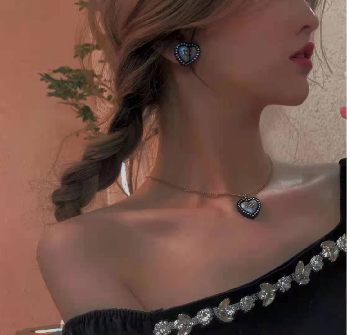 Summer Fashion Love Pendant Diamond Necklace Earring Set