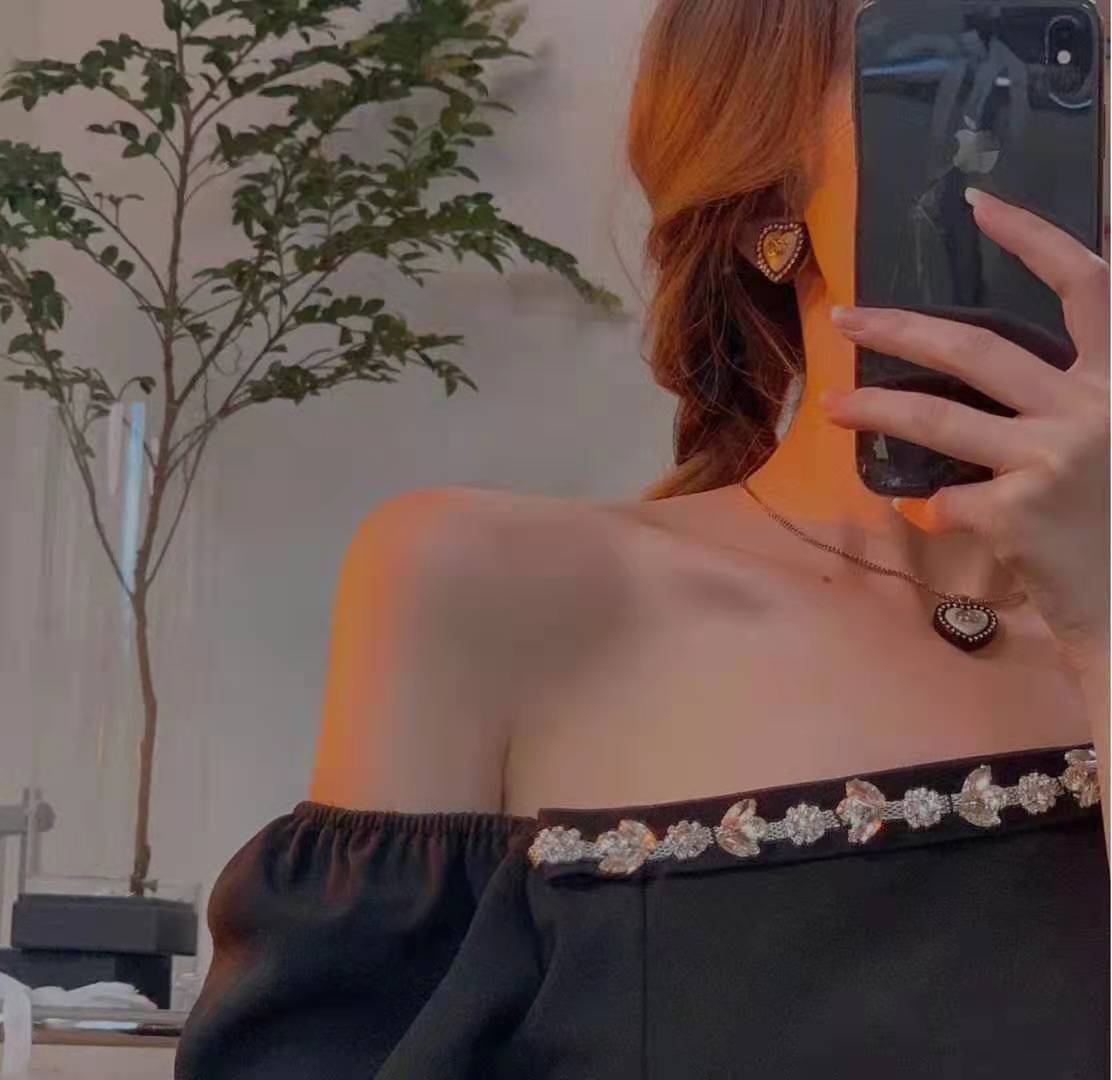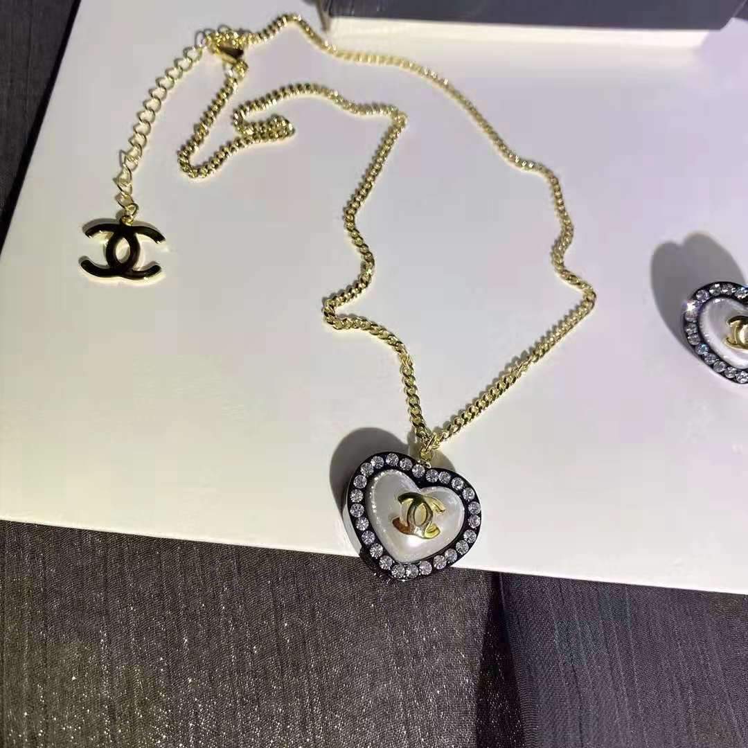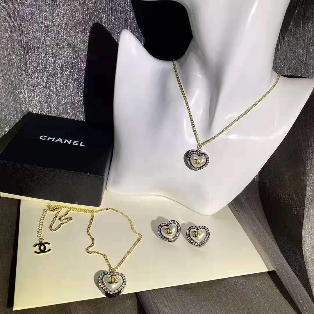 Summer Fashion Love Pendant Diamond Necklace Earring Set